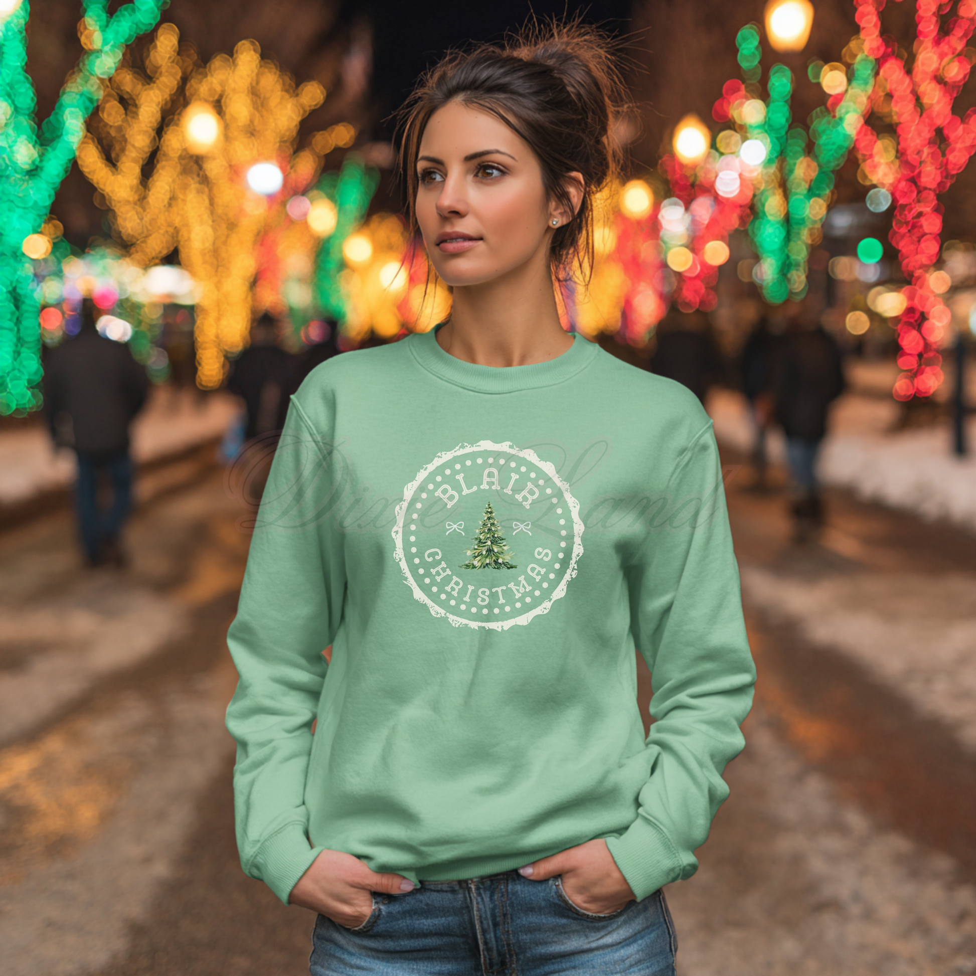 Celebrate the season in style with the Blair Christmas Sweatshirt! This boutique-inspired design features a festive Christmas tree framed by a charming lace circle and dainty bow accents, making it the perfect cozy piece for holiday gatherings, school events, and community celebrations. Designed on a premium Comfort Colors® crewneck, this sweatshirt blends comfort and charm for a timeless holiday look.