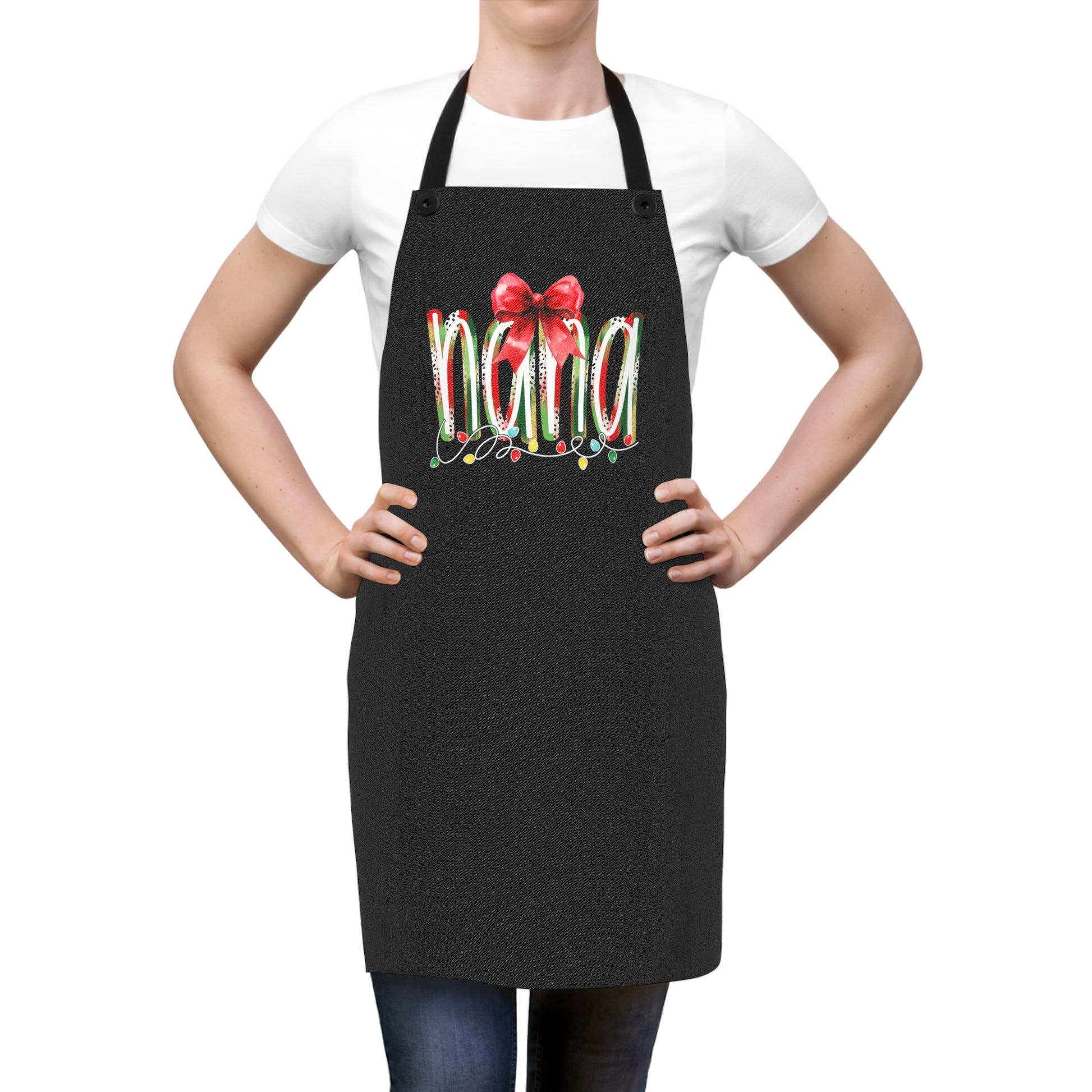 Christmas 'Nana' Apron — Holiday Baking Apron with Festive Lights & Bow
