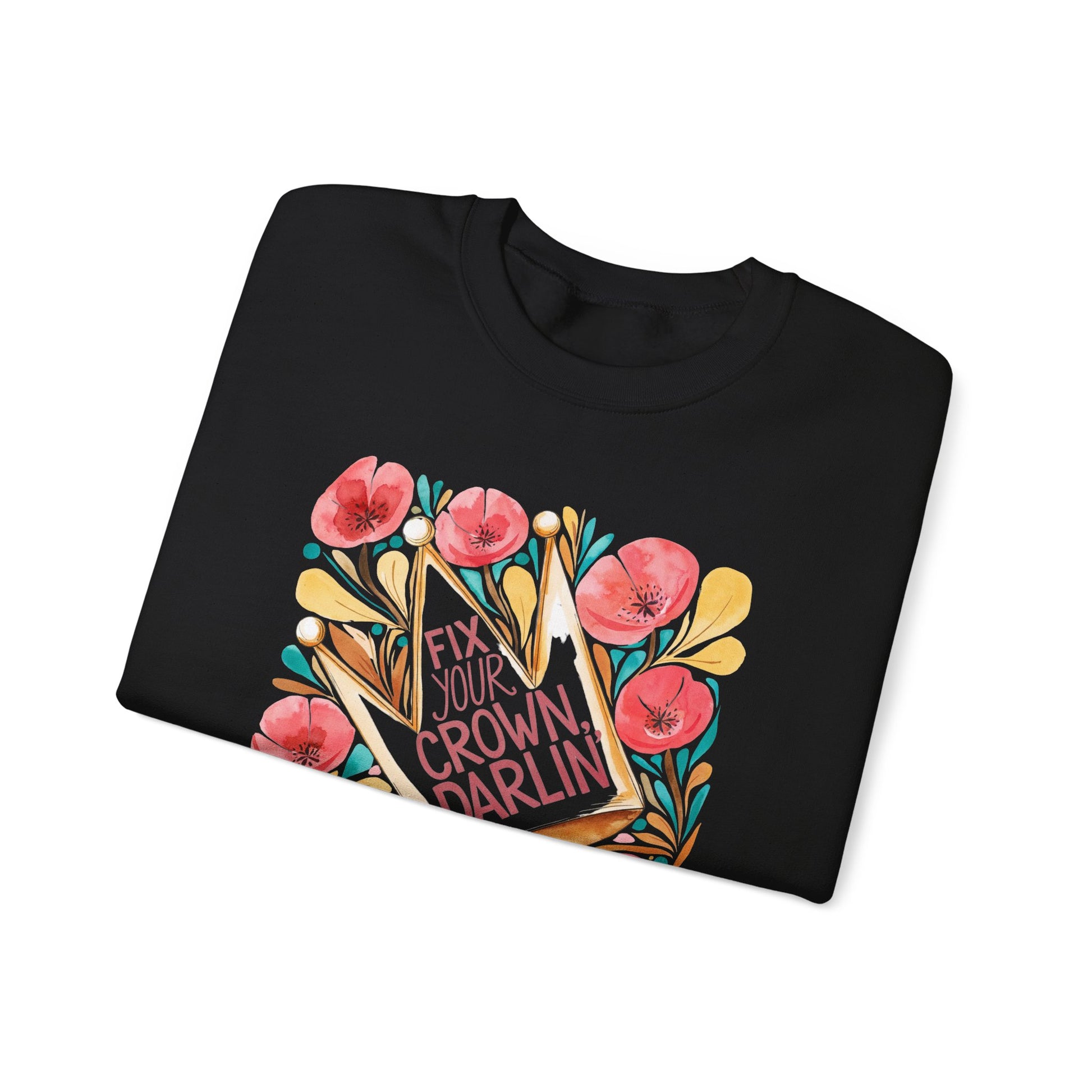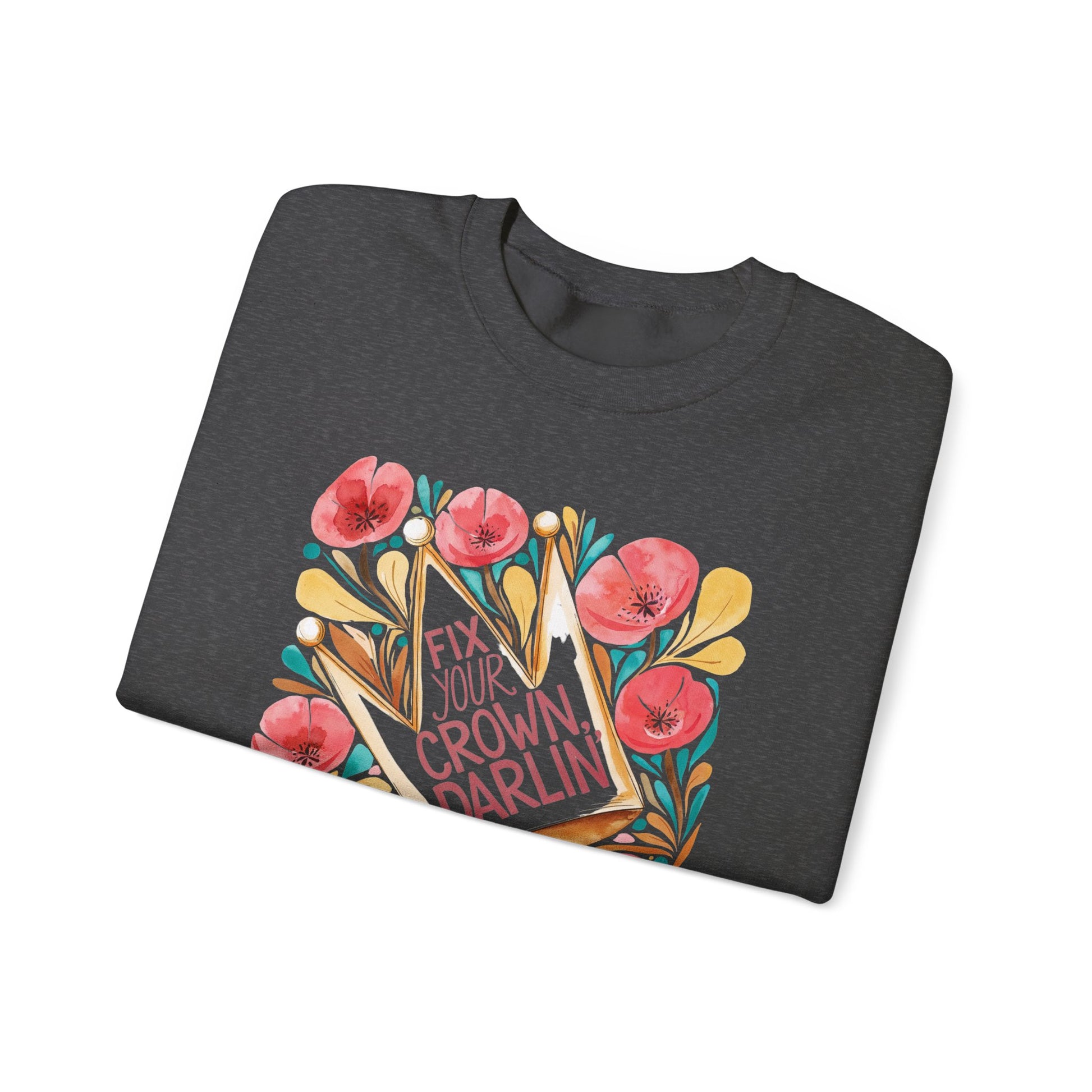 Crewneck Sweatshirt — Straighten Your Crown Darlin' Floral Graphic