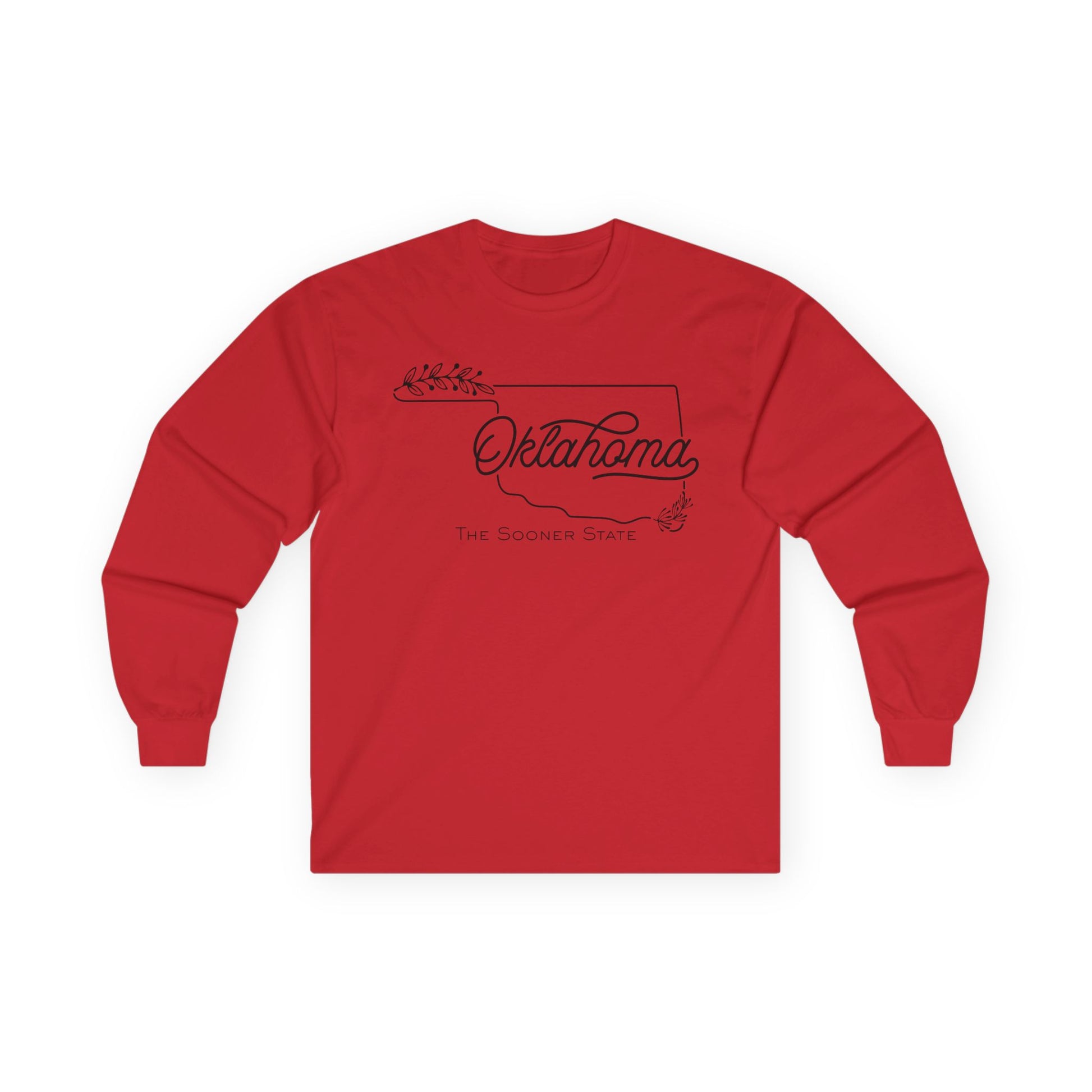 Oklahoma Script Long Sleeve Tee — "Oklahoma The Sooner State"