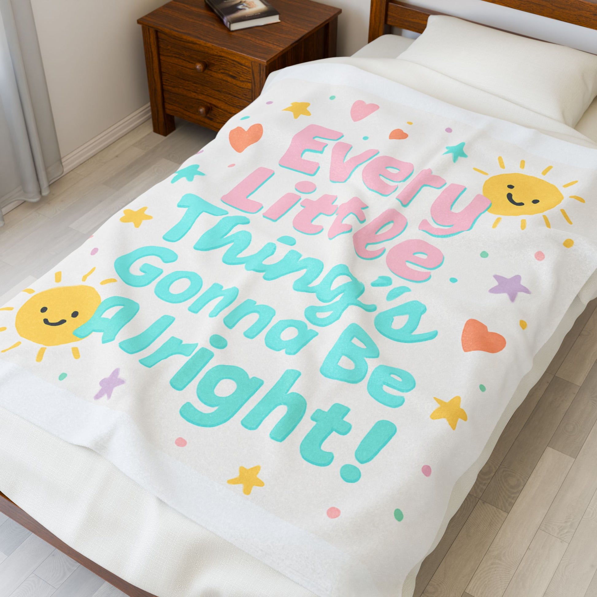 Velveteen Plush Blanket — "Every Little Thing's Gonna Be Alright" Pastel Baby Throw